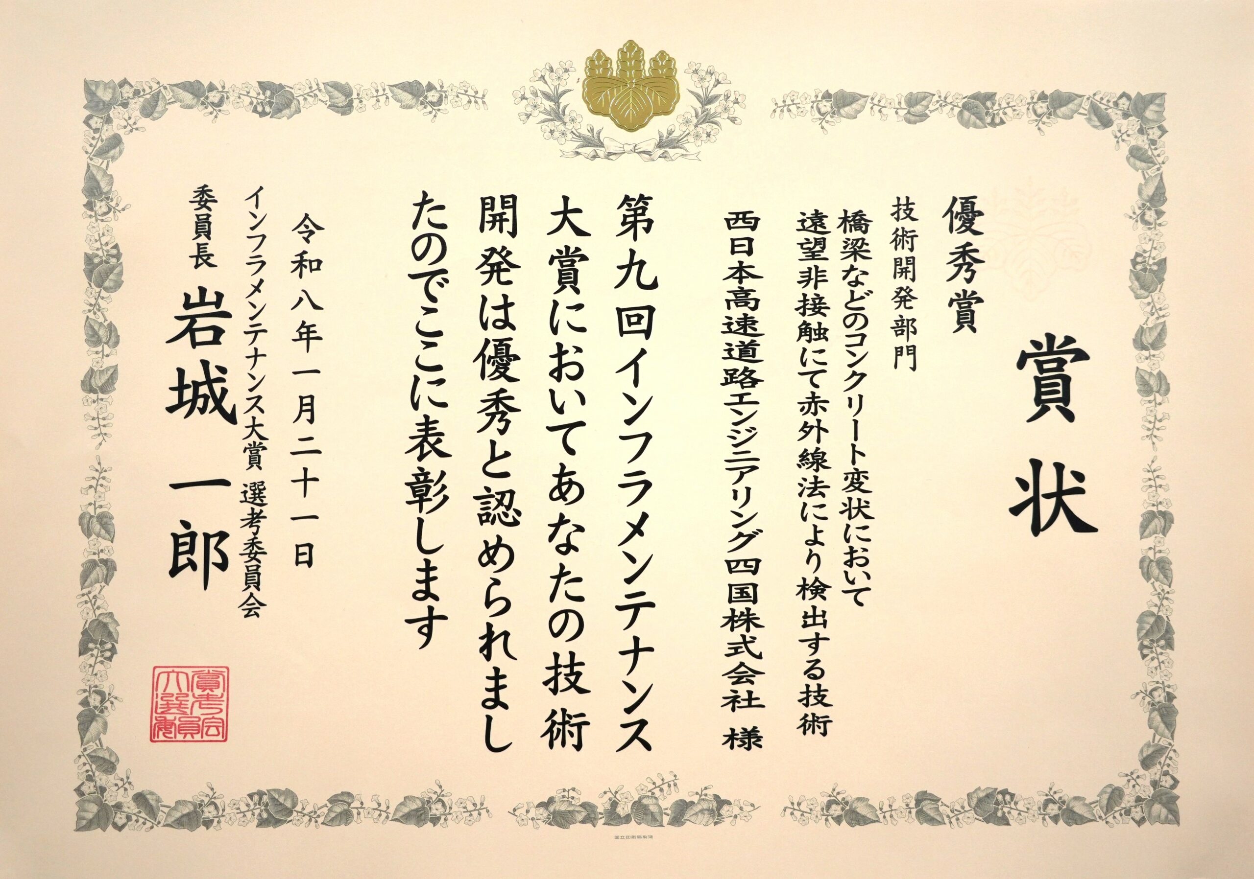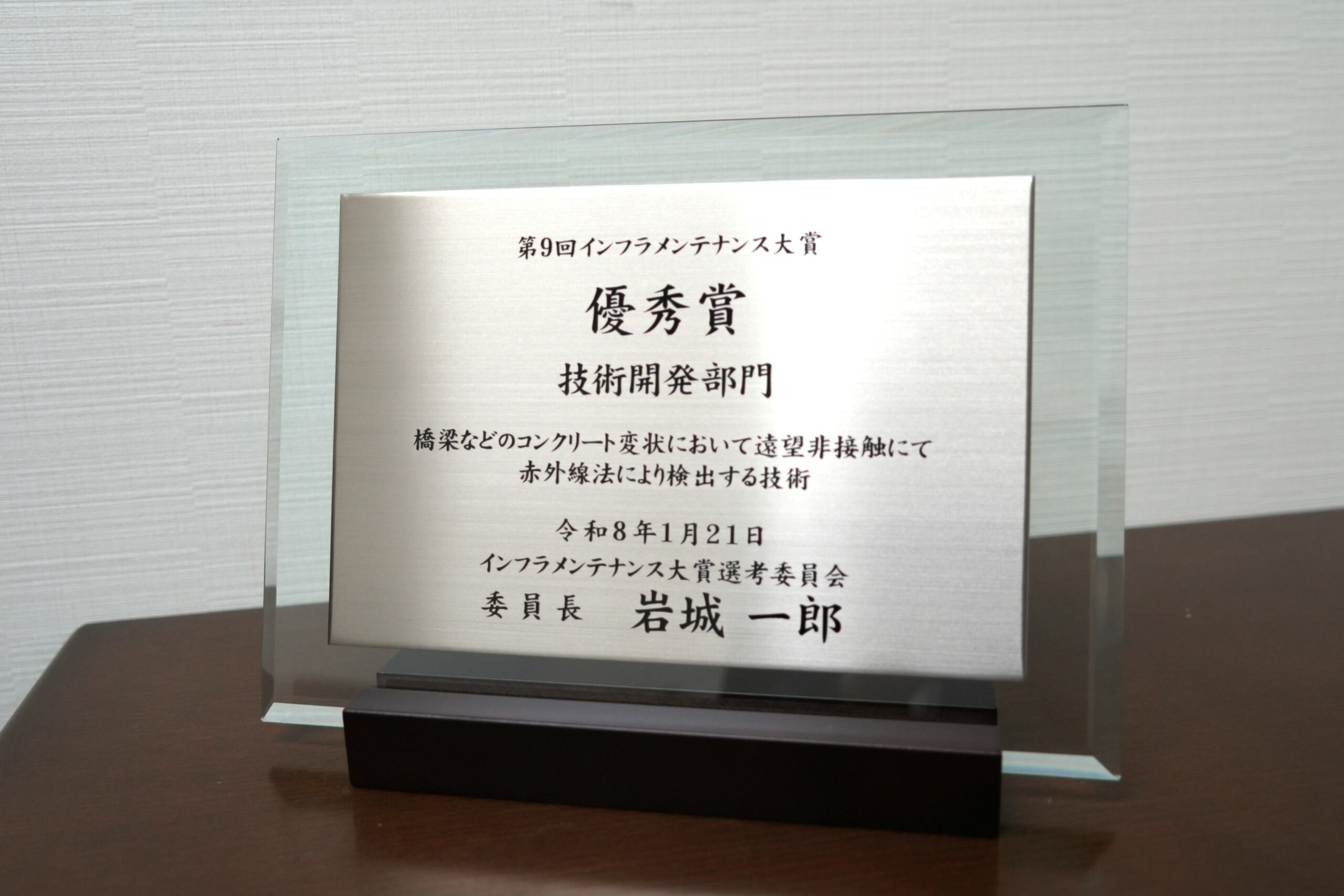 このたび、当社が「橋梁などのコンクリート変状において遠望非接触にて赤外線法により検出する技術」の取組みが、第9回インフラメンテナンス大賞の優秀賞を受賞しました。